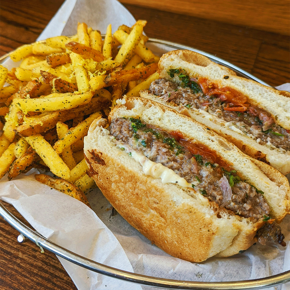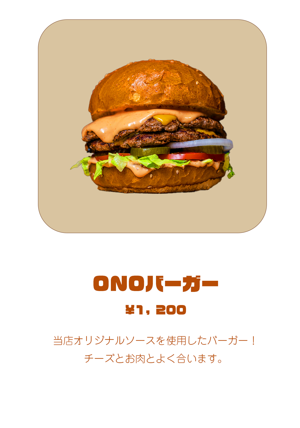 潮風香る海辺の街にある「ONO BURGER」は、毎日焼き立てのパティとふわふわのバンズが自慢のハンバーガー専門店。海を眺めながら、手作りの味をゆったりとお楽しみください。